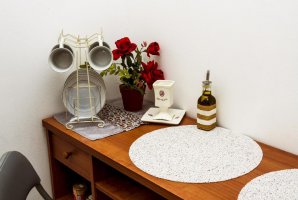 איזה אבזור קיים במטבח של צימר מגע הקסם?האבזור הקיים במטבח של צימר מגע הקסם: מכונת אספרסו / קפה, קומקום חשמלי, כיריים, מיקרוגל, מקרר קטן.