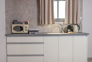 איזה אבזור קיים במטבח של פנינת המעיינות?האבזור הקיים במטבח של פנינת המעיינות: קומקום חשמלי, כיריים, מיקרוגל, מקרר.