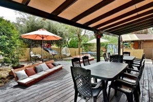 לרשות האורחים בריכת שחייה פרטית מקורה ומגודרת להבטחת פרטיות מלאה. מתחם החוץ כולל פינות ישיבה נוחות עם ריהוט גן אלגנטי, שולחן גינה ועמדת מנגל BBQ. בנוסף, תוכלו ליהנות מהמיטות שיזוף המוצבות בחצר ולהתפנק בשמש הצפונית.