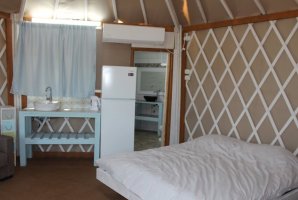 איזה אבזור קיים במטבח של יורט עונג שקט?האבזור הקיים במטבח של יורט עונג שקט: קומקום חשמלי, כיריים, טוסטר, מיקרוגל, מקרר, מיניבר מים.