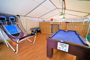 בין הפינוקים המוצעים, תמצאו בריכת שחייה פרטית מחוממת ומקורה, המאפשרת הנאה בכל עונות השנה. לצידה, ג'קוזי ספא ובריכת זרמים להשלמת החוויה המפנקת. המתחם החיצוני כולל גם פינות ישיבה נוחות, ערסלים ומיטות שיזוף, לצד עמדת מנגל BBQ ושולחן סנוקר חיצוני להנאת כל האורחים.