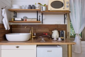 איזה אבזור קיים במטבח של בקתות עץ סיגלית?האבזור הקיים במטבח של בקתות עץ סיגלית: קומקום חשמלי, מכונת אספרסו / קפה, מיקרוגל, מקרר קטן.